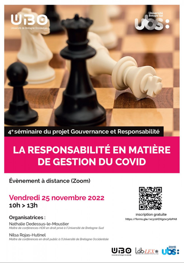 4e séminaire du projet Gouvernance et Responsabilité organisé par Nathalie Dedessus-le-Moustier, Maître de conférences-HDR en droit privé à l’Université de Bretagne-Sud, Nilsa Rojas-Hutinel, Maître de conférences en droit public à l’Université de Bretagne Occidentale pour l'UBO, l'UBS et le Lab-LEX