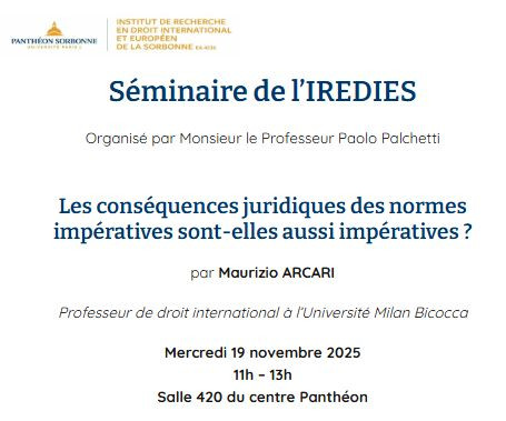 Paolo Palchetti, « Les conséquences juridiques des normes impératives sont-elles aussi impératives ? », le 19 novembre 2025