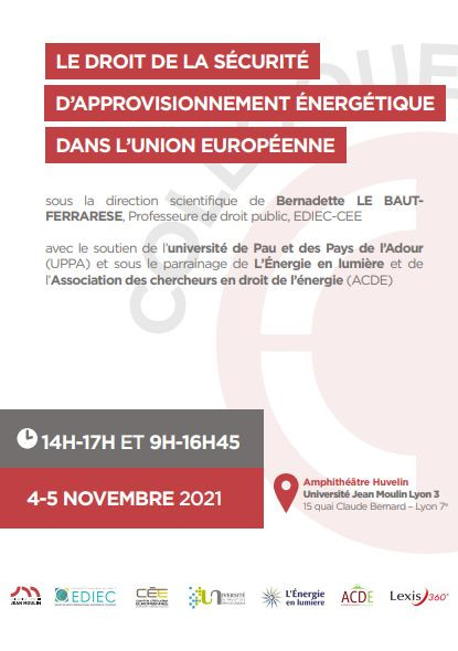 Etienne Durand, Bernadette Le Baut-Ferrarese, « Le droit de la sécurité d'approvisionnement énergétique dans l'Union européenne », Colloque Le droit de la sécurité d’approvisionnement énergétique dans l’Union européenne, Lyon, le 04 novembre 2021