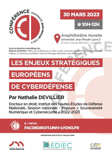 Etienne Durand, « Les enjeux stratégiques européens de cyberdéfense », Les enjeux stratégiques européens de cyberdéfense, Lyon, le 30 mars 2023