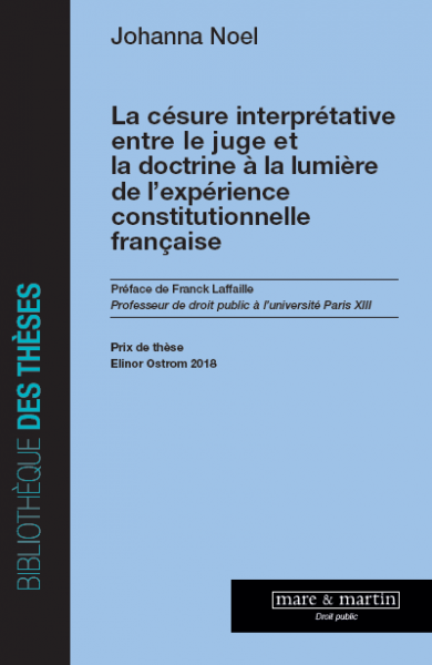 Johanna Noël, La césure interprétative entre le juge et la doctrine à la lumière de l'expérience constitutionnelle française, Mare & Martin, 2021, Bibliothèque des thèses (Droit public), 726 p.