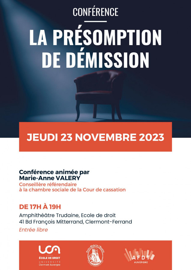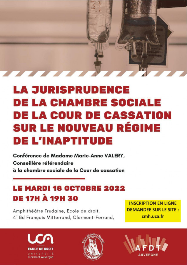 Conférence organisée par le Centre Michel de L'Hospital UR 4232, Université Clermont-Auvergne avec l'AFDT-Auvergne Association française de droit du travail et de la sécurité sociale sous la coordination de Gwennhaël François, MCF HDR en droit privé et Christophe Mariano, MCF en droit privé
