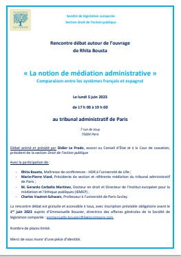 Docteure en droit de l’Université Paris I Panthéon-Sorbonne (2009) et Maîtresse de conférences en droit public à l’Université de Lille, Rhita Bousta soutiendra son H.D.R. après quinze années de recherches en droit public comparé. Le Mémoire soumis au jury se divise en deux parties. La première synthétise le parcours de Rhita Bousta, depuis ses premiers écrits - notamment un ouvrage de thèse proposant une définition de la notion de bonne administration - jusqu’à ses récents articles et son expérience à l’Université ouverte de Catalogne sanctionnée par la qualification de professeure des Universités en Espagne (ANECA, 2019). Outre la participation à de nombreux projets de recherche, ouvrages collectifs et comités de Revues internationaux, il est fait état de directions de mémoires et d’évaluations de travaux de recherche (jury international pour l’attribution de financements, jurys de thèse, etc.). Adoptant majoritairement une optique comparatiste, la quarantaine de publications - en français, anglais et espagnol - s’articule autour de deux axes majeurs ayant pour point commun les rapports entre l’individu et l’État : d’une part, les relations entre administration(s) et citoyens (droit administratif européen, bonne administration/bonne gouvernance, Ombudsmän) et, d’autre part, la conciliation entre l’ordre public et les droits et libertés fondamentaux (défense d’une « spécificité française » en matière de contrôle constitutionnel de proportionnalité, analyse critique des lois de lutte contre le terrorisme, etc.). La seconde partie du Mémoire contient un travail de recherche inédit sur la notion de médiation administrative, qui a récemment fait l’objet d’une publication sous forme de monographie aux éditions L’Harmattan (septembre 2021). Si le sujet est nouveau pour la candidate, l’approche reflète sa vision privilégiée du droit comparé : définir des concepts flous en partant de la comparaison des droits (ici, français et espagnol). Pour cette HDR, la candidate a aussi réalisé, pour la première fois, vingt entretiens avec des médiateurs et experts de terrain, en France et en Espagne, afin de nourrir une analyse théorique et critique sur des thèmes disputés, tels que la médiation préalable obligatoire, le statut d’ « alternative » au contentieux, ou encore la distinction entre médiation et conciliation. Une fois le contenu de la notion déterminé, l’auteure montre que celle-ci n’est pas contraire aux principes-clefs de toute médiation, à savoir la liberté et l’égalité des médiés. Déconstruisant certains a priori, ce Mémoire soutient ainsi l’existence d’une notion qui confère une unité aux diverses médiations du secteur public, sans pour autant trahir le concept de médiation présent dans de nombreux autres domaines. Cette diversité dans l’unité caractérise le parcours et les choix de la candidate dont certaines publications sont reproduites en annexes de ce Mémoire.