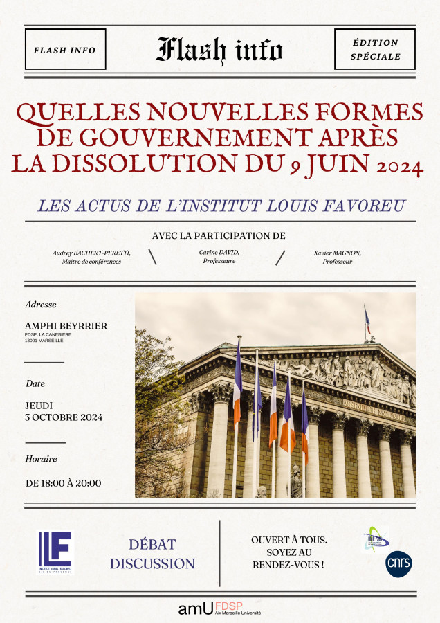 Organisé par l'Institut Louis Favoreu, UMR DICE, Aix-Marseille Université sous la direction scientifique de Audrey Bachert-Peretti, Chloë Geynet-Dussauze, Priscilla Jensel-Monge, Julien Padovani, Xavier Magnon et Ariane Vidal-Naquet