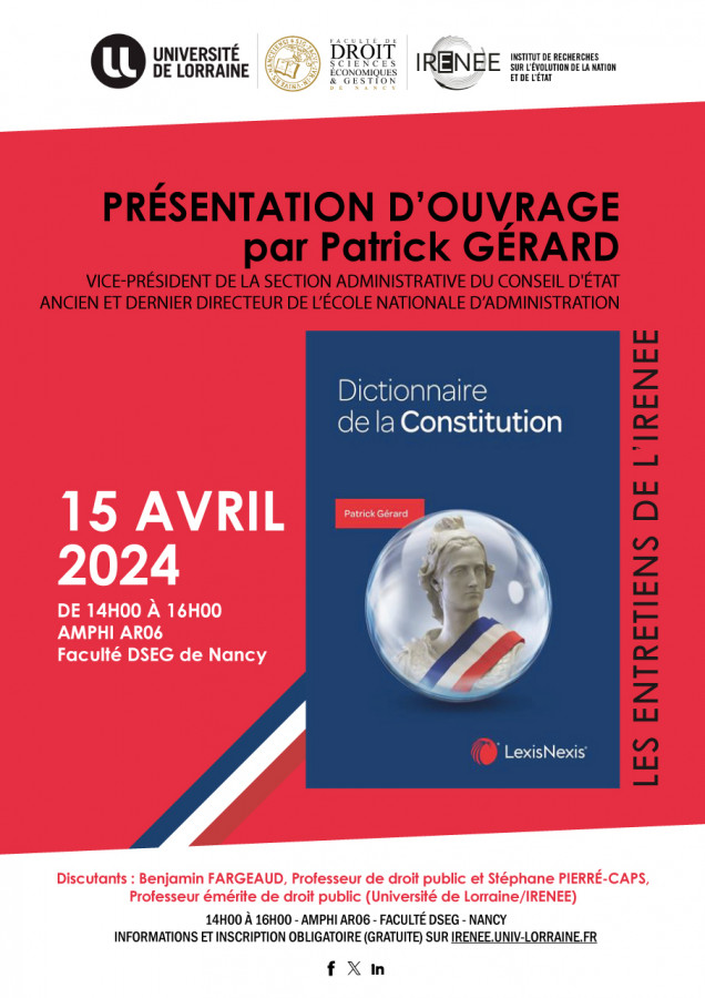 Conférence organisée dans le cadre des "Entretiens de l'IRENEE" sous la dir. scientifique de Benjamin Fargeaud, Professeur de droit public, Université de Lorraine/IRENEE