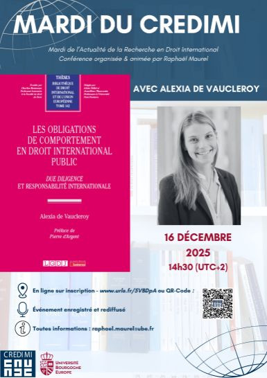 Organisé par Raphaël Maurel MCF à l’Université de Bourgogne, CREDIMI, dans le cadre du cycle ALADIN "Droit international et activités numériques"
