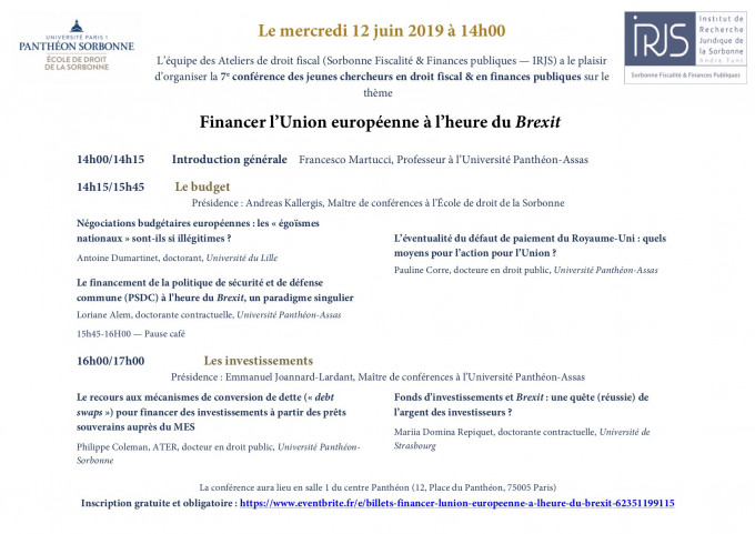 7e conférence des jeunes chercheurs en droit fiscal & en finances publiques organisée par l’équipe des Ateliers de droit fiscal - Sorbonne Fiscalité & Finances publiques — IRJS