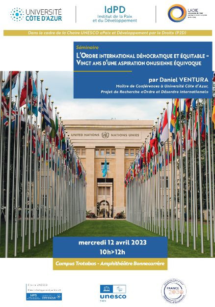 Conférence organisée par l’IDPD et le LADIE, Université Côte d'Azur dans le cadre de la Chaire UNESCO "Paix et Développement par le Droit" (P2D) et du programme de recherche "Ordre et Désordre international", sous la responsabilité scientifique de Daniel Ventura, MCF à Université Côte d'Azur