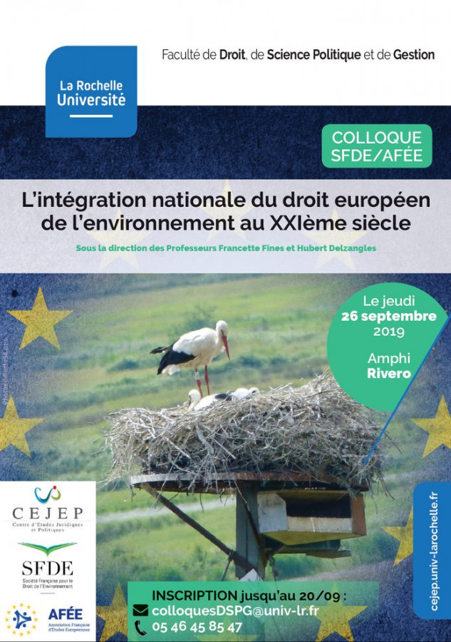 Organisé par la SFDE, l'AFÉE, et le Centre de recherche des Études Juridiques et Politiques de la Rochelle Université sous la direction des Professeurs Francette Fines et Hubert Delzangles