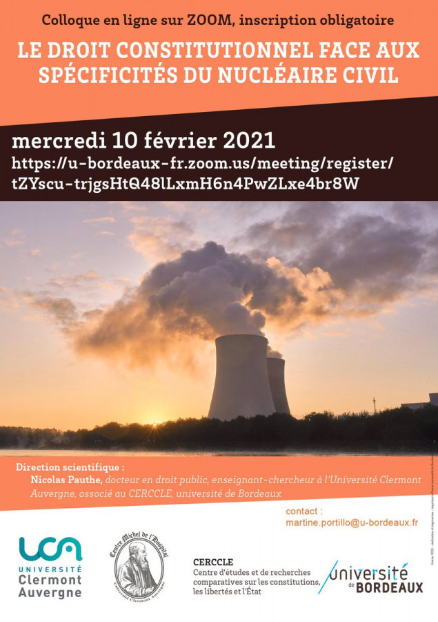 Nicolas Pauthe (dir.), Le droit public interne face aux spécificités du nucléaire civil: [actes du colloque organisé à Bordeaux, le 10 février 2021 et à Clermont-Ferrand, le 3 mars 2021], Centre Michel de l'Hospital, 2022, Centre Michel de l'Hospital, 219 p.