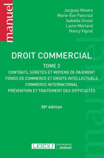 Marie-Eve Pancrazi, Jacques Mestre, Marie-Ève Pancrazi-Tian, Isabelle Arnaud-Grossi, Laure Merland, Droit commercial, LGDJ une marque de Lextenso, 2018, Manuel, 735 p.