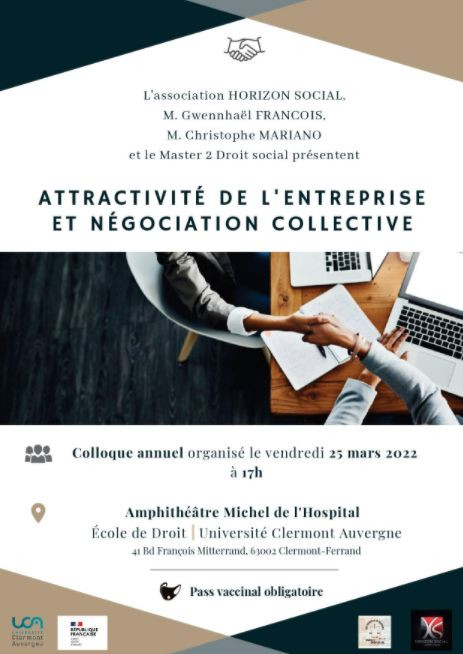 Organisé pour le CMH et la section Auvergne de l'Association Française de Droit du Travail et de la sécurité sociale par Messieurs Gwennhaël François, Maître de conférences en droit privé, et Christophe Mariano, Maître de conférences en droit privé.