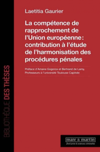 Amane Gogorza, Laetitia Gaurier, Bertrand de Lamy, La compétence de rapprochement de l'Union européenne: contribution à l'étude de l'harmonisation des procédures pénales, Mare & Martin, 2025, Bibliothèque des thèses. Droit privé et sciences criminelles, 630 p.
