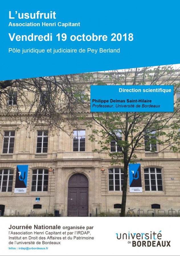 Organisé par l’IRDAP, Université de Bordeaux sous la direction scientifique de Frédérique Julienne, Maître de conférences, Institut en droit des affaires et du patrimoine de l'université de Bordeaux