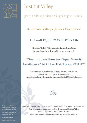 Organisé par l'Institut Villey dans le cadre du Séminaire "Jeunes Docteurs" sous la direction de L. André et M. Chevrier - Doctorantes à l’Université Panthéon-Assas