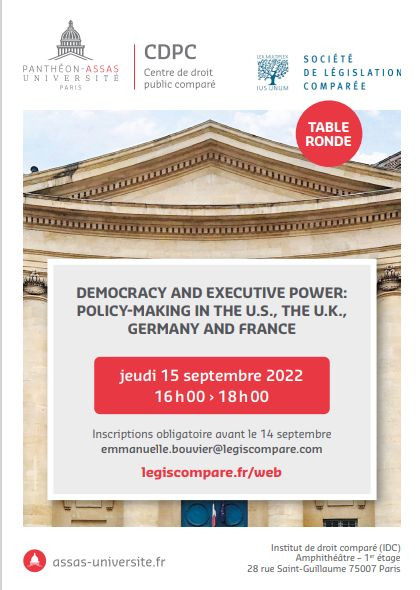 Dominique Custos, « Democracy and Executive Power : Policy-Making in the U.S., the U.K, Germany and France », le 15 septembre 2022