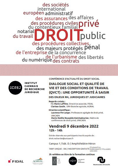 Organisé par l'Institut caennais de recherche juridique sous la coordination scientifique de Véronique Mikalef-Toudic, Maître de conférences à l'Université de Caen Normandie & Vincent Orif, Maître de conférences à l'Université de Sorbonne Paris Nord