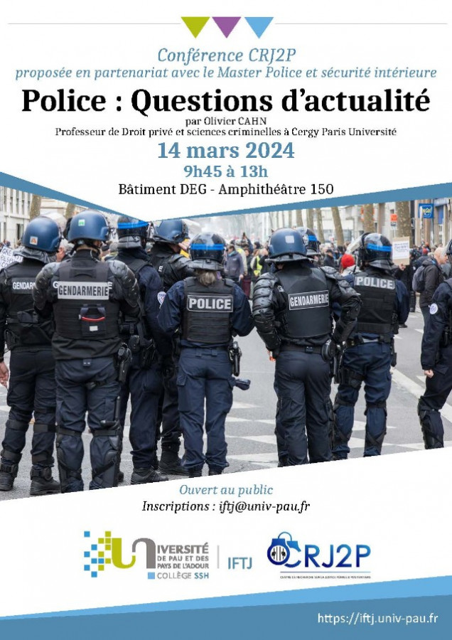 Conférence organisée par l'IFTJ, Université de Pau et Pays de l'Adour dans le cadre des conférences du CRJ2P en partenariat avec le Master Police et sécurité dirigé par Joana Falxa et Ludivine Grégoire, membres du CRJ2P