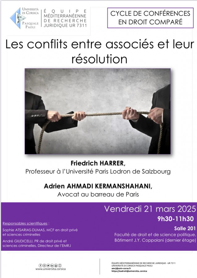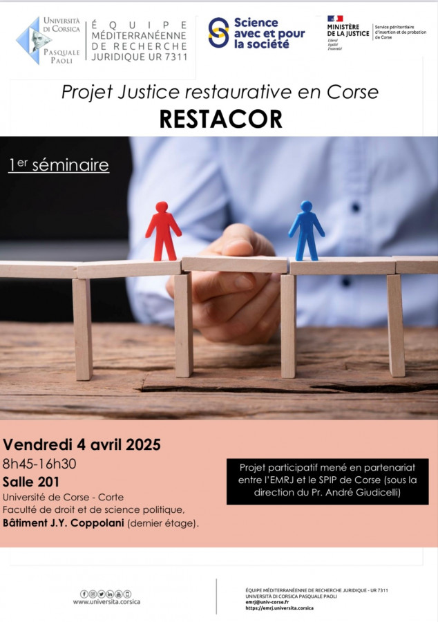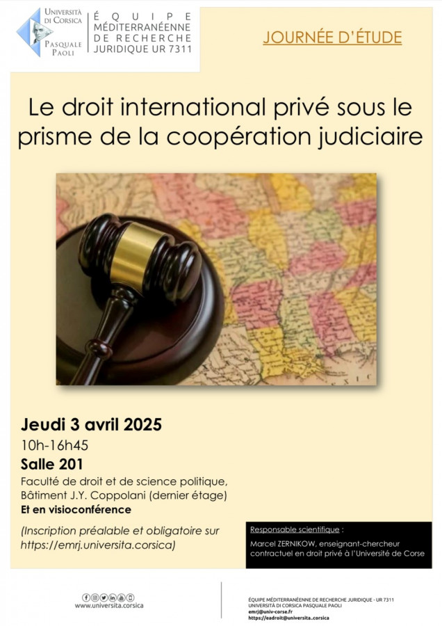 Organisé par l'EMRJ de la faculté de droit, Università di Corsica, Pasquale Paoli, sous la responsabilité scientifique de Marie-Hélène Gozzi, MCF HDR de droit privé et sciences criminelles