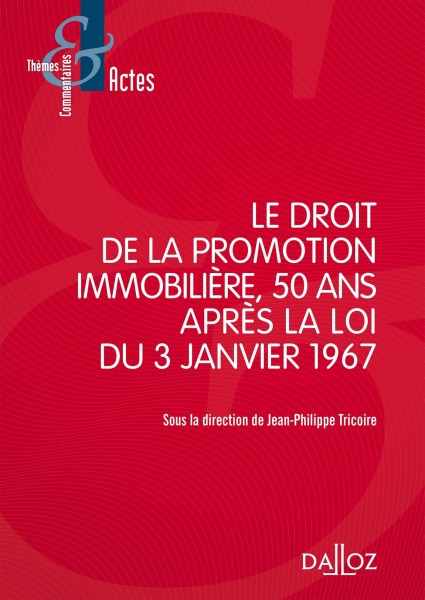 Jean-Philippe Tricoire (dir.), Le droit de la promotion immobilière, 50 ans après la loi du 3 janvier 1967: actes du colloque organisé par le Groupement d'étude et de recherche en droit immobilier, de l'aménagement, de l'urbanisme et de la construction (GREDIAUC) et le réseau Alta-Juris international, 20 janvier 2017, Maison du barreau de Paris, Dalloz, 2017, Thèmes et commentaires, 147 p.