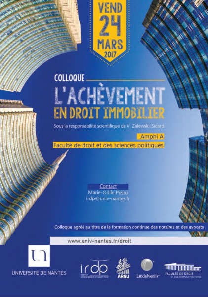 Jean-Philippe Tricoire, « L’achèvement en droit immobilier », le 24 mars 2017