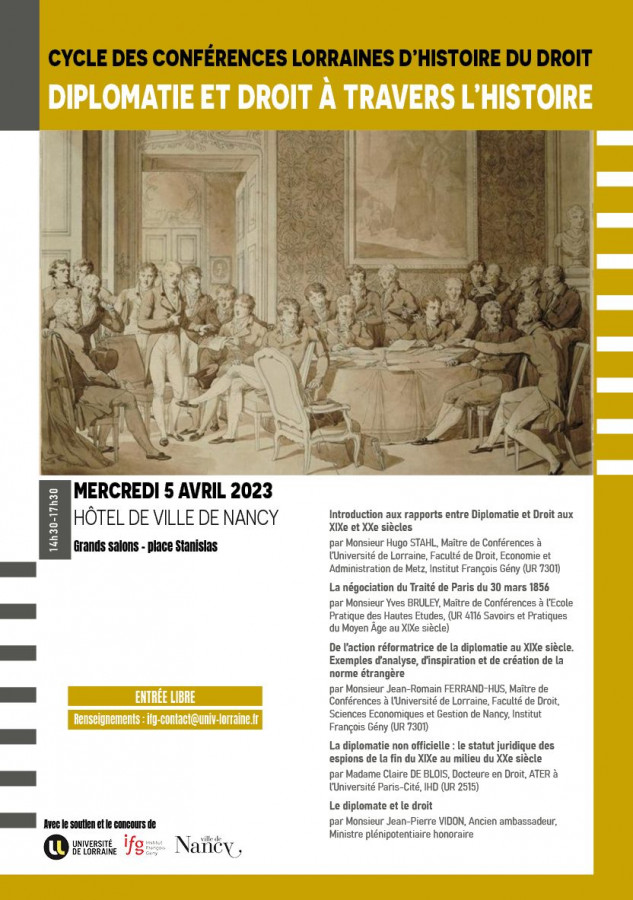 Organisée par l'Institut François Gény, Université de Lorraine et la Ville de Nancy dans le cadre du cycle des conférences lorraines d'Histoire du Droit