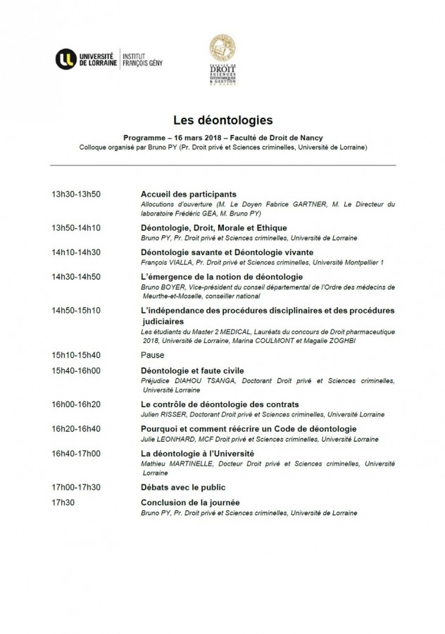 Organisé par Bruno Py, Professeur à l'Université de Lorraine