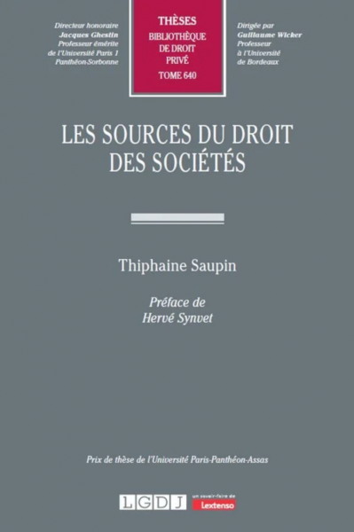 Thiphaine Saupin, Les sources du droit des sociétés, LGDJ et un savoir-faire de Lextenso, 2023, Bibliothèque de droit privé, 582 p.