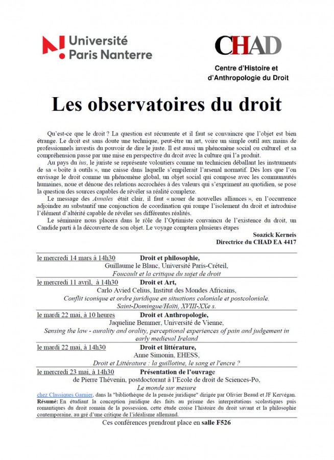 Le code de droit castillan connu sous le nom de Siete Partidas stipule, dans sa deuxième partie, que le peuple est l'âme sensible (ou sensitive) du royaume. Après cette définition, le code légifère sur la manière dont le peuple-âme sensible perçoit à travers les cinq sens externes, puis se concentre sur les cinq sens internes ou opérations post-sensorielles (le sens commun, la fantaisie, l'imagination, la considération et la mémoire). Je soutiens que cette législation, fondée sur les principes de la science aristotélicienne de l'âme, offre une nouvelle définition du sujet de droit qui prend en compte non seulement les actions, mais aussi les passions et les affects. Ainsi, le corps du droit s'approprie certains éléments de la science de l'âme dans le but de créer ce type de subjectivité. À la suite de cette affirmation, j'examine les façons dont les affects et les passions deviennent centraux dans ce projet législatif. Je suggère que l'originalité du code et de la législation qu'il contient est liée aux circonstances historiques et intellectuelles du monde ibérique entre le 11e et le 13e siècle : les Siete Partidas ne sont pas le résultat de ces circonstances, mais plutôt une réponse très audacieuse à certains des débats qui ont eu lieu dans les milieux musulmans, juifs et chrétiens et qui ont discuté de la possibilité d'une affinité entre le droit et les corpus philosophiques. Cette réponse ambitieuse transforme en fait le contexte, car il ne s'agit pas d'une intervention à caractère théorique ou spéculatif, mais d’une réponse codifiée, législative à la question de savoir s'il existe une affinité entre le droit et les corpus philosophiques. Ceci implique une nouvelle forme d'écriture du droit, tel qu’on le voit dans les Partidas. Inclure l'étude du droit ibérique médiéval dans les disciplines du droit et des sciences sociales, ainsi que dans l'histoire du droit, représente un défi pour certains des principes les plus traditionnels de ces domaines d'étude.