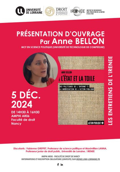 Maximilien Lanna, Anne Bellon, Fabienne Greffet, Discussion suite à la présentation du livre d'Anne Bellon, L'Etat et la toile, éditions du Croquant, 2023, 2024