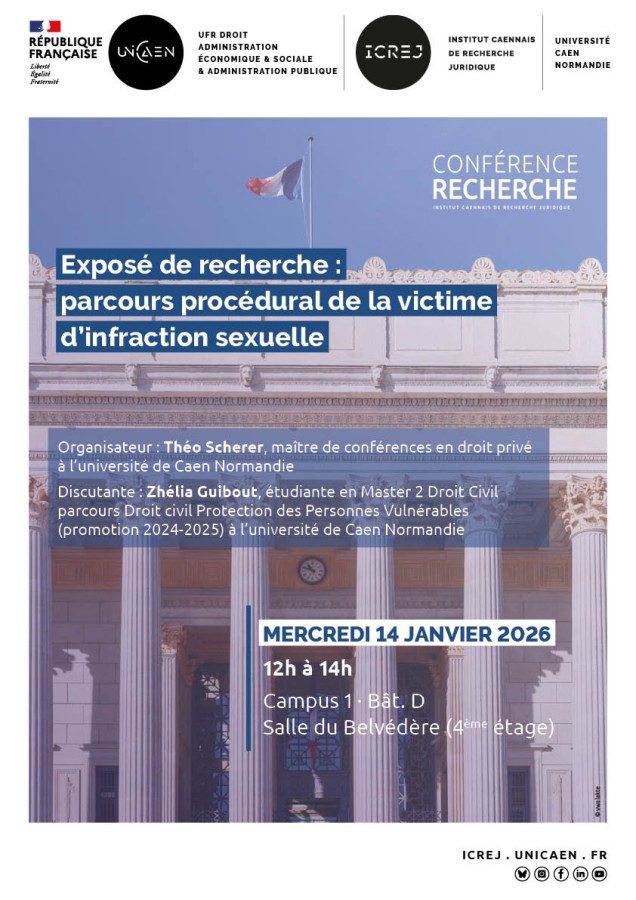 Conférence organisée par l'ICREJ, Université de Caen sous la direction scientifique de Théo Scherer, Maître de conférences en droit privé à l’Université de Caen Normandie
