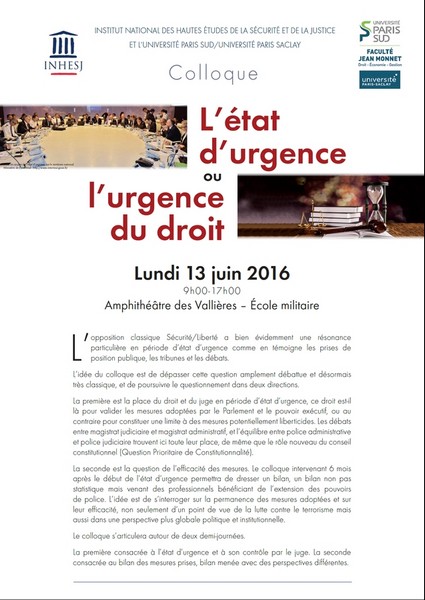 Pierre Callé, « Colloque - L'état d'urgence ou l'urgence du droit ? - 13 Juin 2016 », le 13 juin 2016