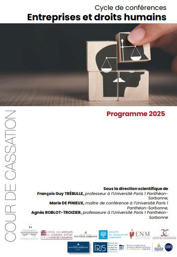 Conférence organisée dans le cadre du Cycle "Entreprises et droits humains" par la Cour de Cassation avec l'Université Paris 1 Panthéon-Sorbonne, l'IRJS, la SLC et l'ENM sous la direction scientifique de François Guy Trébulle, Pr. à l’Université Paris 1 Panthéon-Sorbonne, Marie de Pinieux, MCF à l’Université Paris 1 Panthéon-Sorbonne et Agnès Roblot-Troizier, Pr. à l’Université Paris 1 Panthéon-Sorbonne