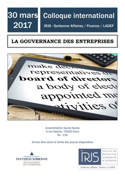 Arnaud Reygrobellet, « La gouvernance des entreprises », le 30 mars 2017