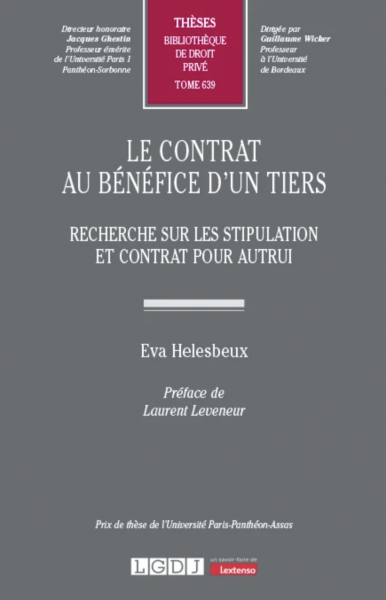 Le bénéfice du contrat peut être attribué à un tiers, ce bénéfice pouvant être une créance, le tiers étant investi de la qualité de créancier, ou une position contractuelle, le tiers pouvant acquérir la qualité de contractant. La première hypothèse, la plus classique, correspond à la stipulation pour autrui. Cette institution permet de scinder les effets du contrat en conférant à une personne n’ayant pas la qualité de contractant une créance de nature contractuelle. Cette opération est gouvernée par deux règles cardinales : la dépendance de la créance du tiers à l’acte et la séparation des qualités au sein du contrat. La première de ces règles permet de justifier les atteintes susceptibles d’affecter la créance entrée dans le patrimoine du bénéficiaire, tandis que la seconde détermine les ajustements nécessaires du régime du contrat sur lequel se greffe une stipulation en faveur d’un tiers. La seconde hypothèse, moins bien appréhendée que la première, correspond au contrat pour autrui. Elle est d’utilisation fréquente en permettant aux parties à un contrat d’envisager la conclusion d’un contrat futur avec le tiers bénéficiaire ou de concevoir l’inclusion du tiers à un acte d’ores et déjà formé. Dans le domaine du contrat pour autrui, la situation du bénéficiaire ne peut s’expliquer par la simple acquisition d’un droit de créance : le bénéfice dont il peut se prévaloir est plus complexe. La démonstration consiste à établir l’existence de cette opération autonome qui possède des caractéristiques propres et d’en exposer les manifestations ainsi que le régime.