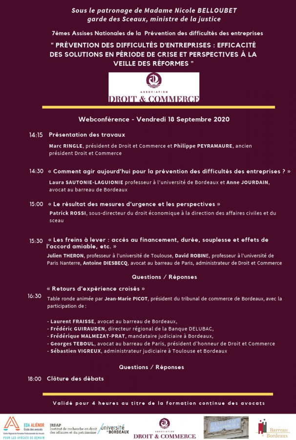 Julien Théron, « Prévention des difficultés d'entreprises : efficacité des solutions en période de crise et perspectives à la veille des réformes », le 18 septembre 2020