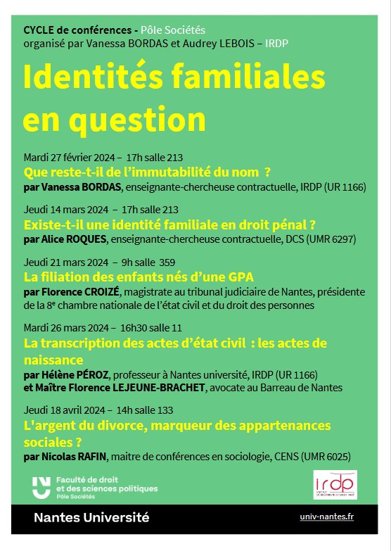 Cycle de conférences organisé par l'IRDP, Nantes Université sous la direction scientifique de Vanessa Bordas et Audrey Lebois