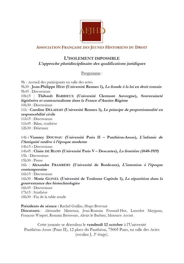 Marie Glinel, « L’isolement impossible. L’approche pluridisciplinaire des qualifications juridiques », le 12 octobre 2018