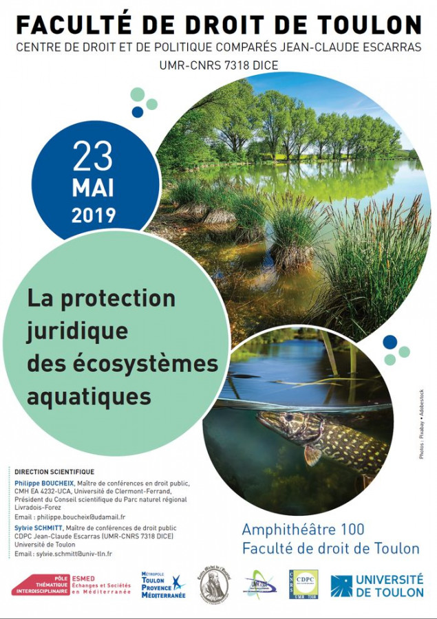 Philippe Boucheix, « Droit de l'eau et droit de la pêche, mariage de raison ? », colloque La protection juridique des écosystèmes aquatiques, Toulon, le 23 mai 2019