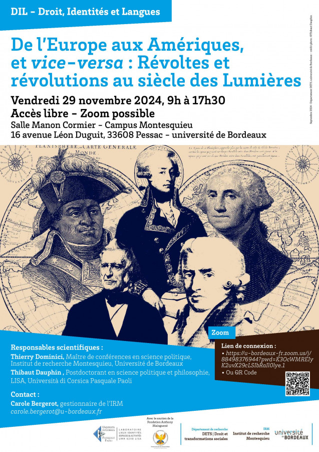 Colloque International Interdisciplinaire organisé par l'IRM et le DETS, Université de Bordeaux sous la direction scientifique de Thierry Dominici, Maître de conférences en science politique, Institut de recherche Montesquieu, Université de Bordeaux et Thibaut Dauphin, Postdoctorant en science politique et philosophie, LISA, Università di Corsica Pasquale Paoli