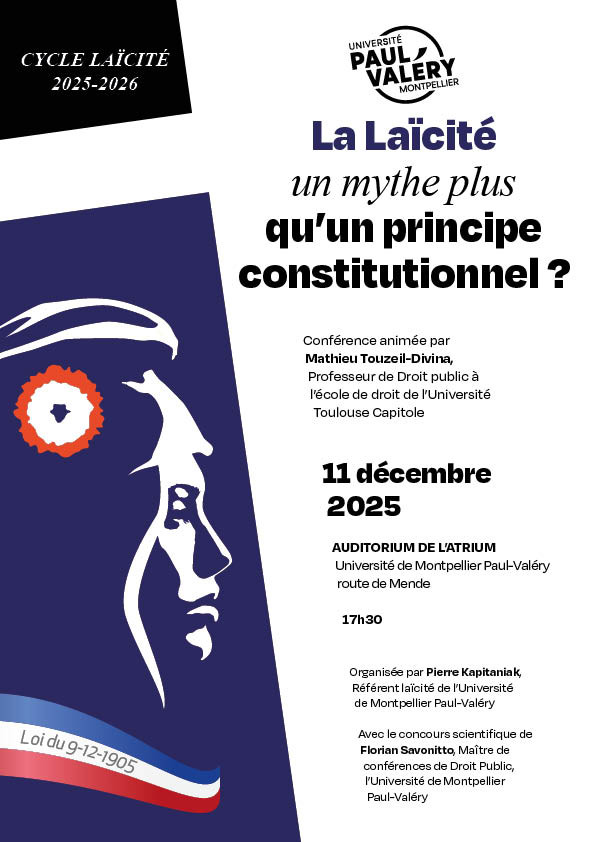 Conférence organisée par l'Université de Montpellier Paul-Valéry sous la direction scientifique de Pierre Kapitaniak, Référent laïcité de l'Université de Montpellier Paul-Valéry