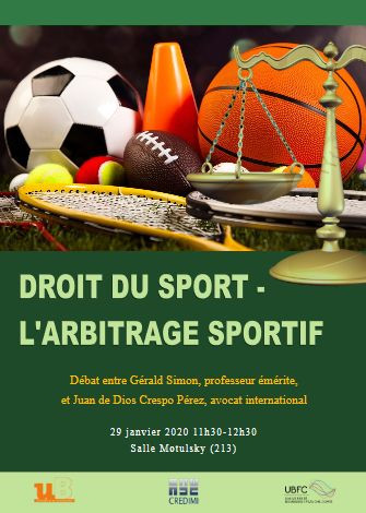 Organisée par le CREDIMI, Univ. Bourgogne dans le cadre du cycle de conférences en droit du sport sous le haut patronage de Monsieur Gérald Simon, Professeur émérite de l'Université de Bourgogne, Membre du CREDIMI, Arbitre au Tribunal Arbitral du Sport
