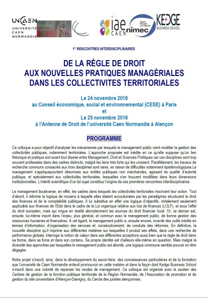 Grégory Godiveau, « Droit, management et collectivités territoriales », le 24 novembre 2016