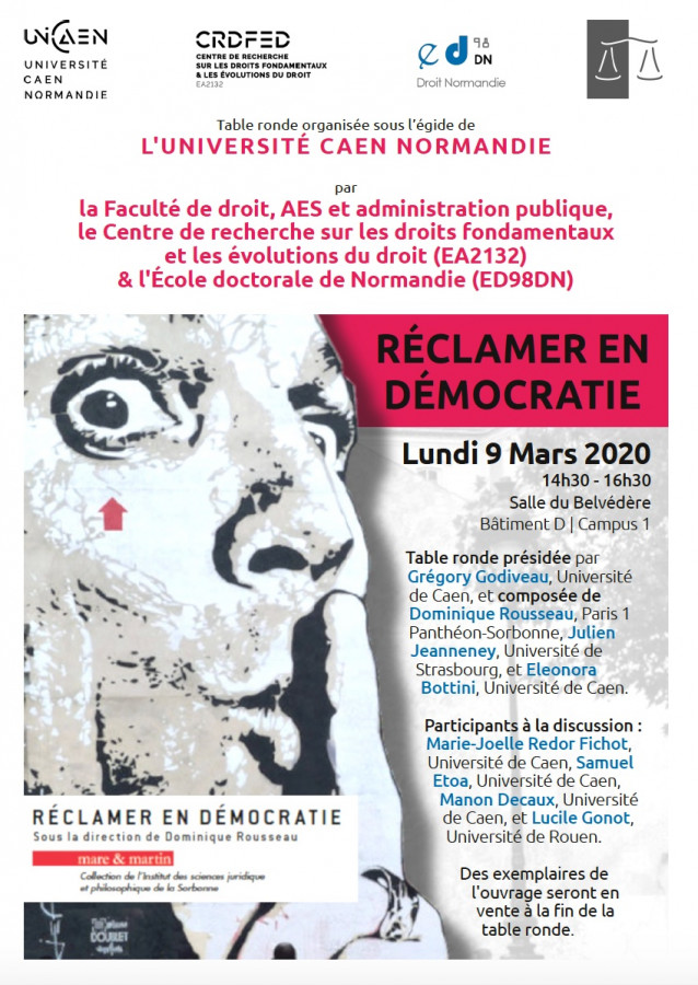 Organisé par le CRDFED -Centre de Recherche sur les Droits Fondamentaux et les Évolutions du Droit, UNICAEN sous la responsabilité scientifique de Grégory Godiveau