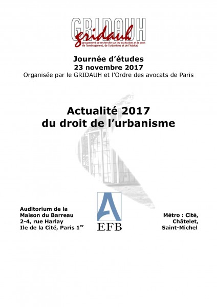 Vincent Le Grand, « Actualité 2017 du droit de l'urbanisme », le 23 novembre 2017