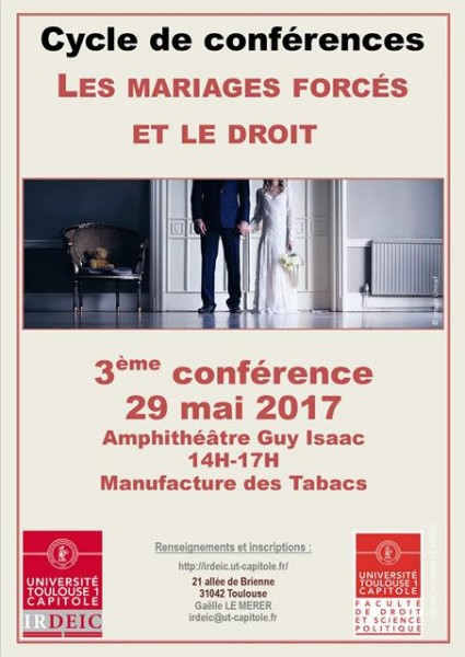 Aurélie Tardieu, « Les mécanismes nationaux de protection des individus exposés au mariage forcé », 3e conférence du cycle: Les mariages forcés et le droit - Les acteurs de la protection des individus exposés aux mariages forcés, Toulouse, le 29 mai 2017