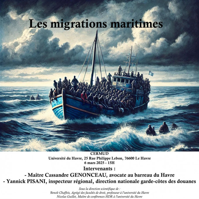 Colloque organisé par Nicolas Guillet, MCF HDR Droit public et Marie Lecler, secrétaire du CERMUD, à l’occasion de la Journée mondiale de la mer prévue par l’OMI pour le CERMUD, laboratoire de recherche en droit de l’Université Le Havre Normandie
