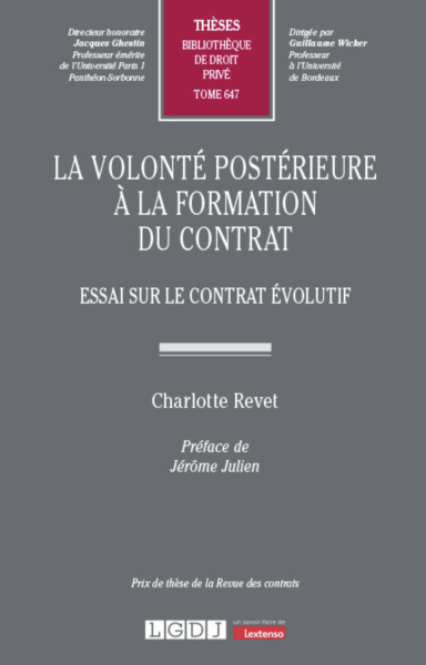 « La volonté postérieure à la formation du contrat » recouvre tous les actes juridiques émis après la formation d’un contrat par l’une ou les parties permettant de transformer ce contrat. De prime abord, elle n’est pas une notion juridique. Seules la volonté unilatérale émise après la formation du contrat (désignée par différents vocables comme le droit potestatif, le pouvoir unilatéral ou la prérogative contractuelle) et la convention également émise après la formation du contrat (à l’instar de l’avenant et de la révocation amiable) sont saisies par le droit, conceptualisées et dotées d’un régime juridique à peu près défini. Mieux, l’opposition fondamentale entre l’unilatéralisme et le conventionnalisme, qui irrigue le droit des contrats, empêcherait de concevoir que l’ensemble de ces manifestations puisse être subsumé sous une notion unitaire. C’est pourtant la proposition qui est ici retenue. La reconnaissance d’un phénomène unitaire de la volonté postérieure à la formation du contrat n’a pas, par ailleurs, pour seul enjeu d’approfondir la connaissance de ces manifestations de volonté. Elle permet également de s’intéresser à la conception contractuelle actuellement dominante. Eu égard à la diversité et à la multiplicité des manifestations de volonté postérieures à la formation du contrat, saisir cette volonté comme phénomène unitaire n’est pas sans conséquence. De manière générale, le besoin de transformations du contrat après sa formation est devenu primordial. Or, la volonté postérieure à la formation du contrat permet de répondre à ce besoin. Elle en est même l’instrument privilégié, par comparaison avec l’adaptation automatique, l’adaptation par le juge, etc. À cet égard, il est possible de concevoir un changement de paradigme contractuel. Dans ce changement de paradigme, le contrat évolutif, capable de se transformer selon des procédures d’évolution rigoureuses dès que l’étape de sa formation est dépassée, a remplacé le contrat classique, par principe intangible, irrévocable, figé, en somme, dans les termes de sa formation. Telle est la seconde proposition avancée dans cette étude.