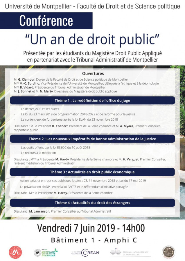 Organisé par les étudiants du Magistère Droit Public Appliqué en partenariat avec le Tribunal administratif de Montpellier