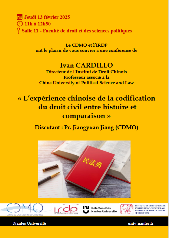 Jiangyuan Jiang, « L’expérience chinoise de la codification du droit civil entre histoire et comparaison », le 13 février 2025
